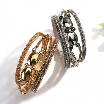 Geometric Metal Beads Leather Bracelet